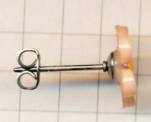 さらに詳しく&ご注文紹介ページへ軸の長さ11ミリ、有効軸長8ミリ軸はチタンです。チタン軸とお皿部分にはメッキがかかっておりません。ファーストピアスのロングタイプとほぼ同じサイズですので耳が厚い方にもおすすめします。 秋色のバラの花のピアスです。アンティークなお色が素敵ですね。 軸がセラミックや樹脂のタイプもございますが、その場合軸はロングタイプにはなりませんのでご注意ください。 |
