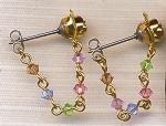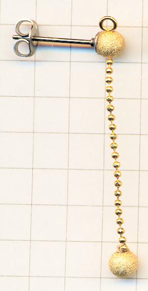 星屑をちりばめたようなボールがキラキラ光りながら揺れるピアスです。星屑ボールはメッキではなく、金(K14)を圧着させた金張りですので高級感があります。チェーン部分は、チェーンの先端に小さなわっかをつけて、ピアスの頭についた星屑ボールに通しています。ボールにチェーンを通して、結び目をつけてぶら下げているみたいなレトロなデザインでかわいいですよ(笑) |