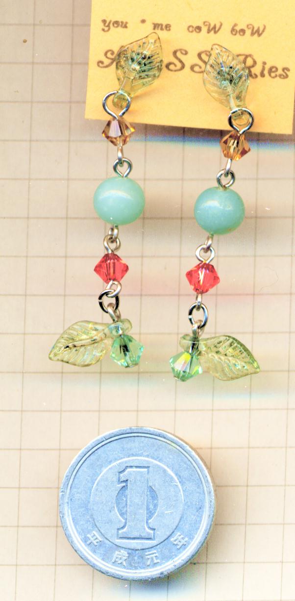 さらに詳しく&ご注文ページへもみじ色の秋色が入荷しましたのでご紹介します。くすんだアースカラーの秋色ではありますが華やかな色合いで、 1年中お使いいただけますよ。ピアスの頭についてるカット少な目の優しく光るガラスと その下の3個のガラスとの相性がよいですね。ピアスの頭に小さなかわいい(3ミリ)のクリスタルガラスつき、 その下にはかわいいガラス3個ついたピアスです。3個のガラスはちょっとずつ色が違うグラデーションになってますから 揺れると光具合もかわいいですよ。 ¥800- |