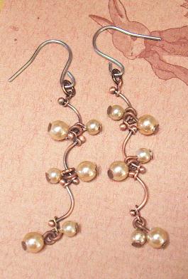 草のつるみたいなくねくねのチェーンについたパールが揺れるかわいいデザインです。パールが木の実みたい(笑)パールは樹脂製ですので見た目の割に軽くヒラヒラと揺れますよ。まっすぐなチェーンよりも揺れ方が複雑でパールが踊っているように見えますよ(笑)季節に応じてお色違いでお楽しみいただけますよ。
