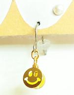 いつも笑顔になれそうなスマイルピアスです。金色のスマイルの顔の下には、黄色い天然石のシトリンが一緒に揺れていますので、スマイルの目や笑った口元から、黄色い輝きが見えるデザインになっています。スマイル君の笑顔が輝いているように見えますよ(笑)