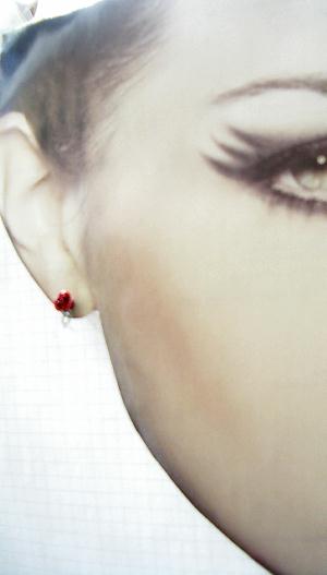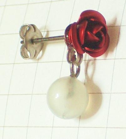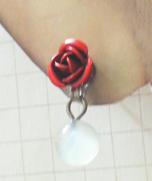 ピアス軸の根元にはチタンのお皿がついていますので、お花部分は耳には直接触れにくいデザインになっています。