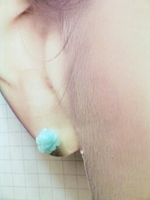 天然石アマゾナイトの薔薇の花のデザインです。ややグリーンがかったうすブルーの色合いは海にピッタリです。夏が楽しみになりそうですね。かわいいですよ(*^_^)