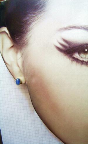 耳のイラストの上につけてみました。大きさの参考にしてみてください。ちょっと福耳ですね(笑)