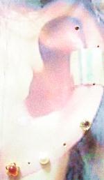 耳のイラストの上につけてみました。大きさの参考にしてみてください。ちょっと福耳ですね(笑)