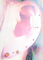 耳のイラストの上につけてみました。大きさの参考にしてみてください。ちょっと福耳ですね(笑)