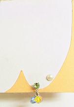 ピアスの頭には若葉のようなうすグリーンのガラスがついています。こちらはカット少な目の優しく光るガラスで、よくあるラインストーンやキュービックジルコニアなどよりも光り方が優しく瑞々しい感じです。春が待ち遠しくなりそうなピアスです(笑)