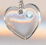 氷のような質感のクリスタルガラスのハートに、小さなキラキラのクリスタルガラスが1粒埋め込まれています。氷が冬の日差しでキラリと光っているように見えますよ。素敵です。