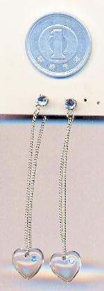 氷のような透明クリスタルガラスハートのロングチェーンピアス(チタンスタッドロング)