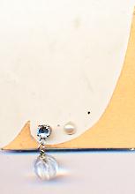 石は天然石水晶です。大きさ8ミリタイプです。石の色は透明ですが、リボンのような模様が彫っている部分が白く光ります。ピアスの頭についている小さな石は大きさ4ミリの透明なクリスタルガラスです