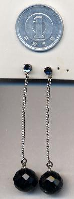 天然石オニキスのピアスです。こちらは大きさ10ミリのタイプです。細めのチェーンで揺れます。カットが入っていますので通常の丸玉に比べて適度に光って綺麗ですよ。