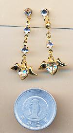 ハートのラインストーンに羽根が生えて、あなたの耳元にやってきましたよ(笑)かわいいハートエンジェルがラインストーンチェーンの下で揺れています。夏の日差しでキラキラ光り綺麗ですよ。