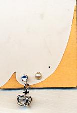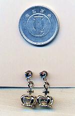 王冠の中のキラキラの石はキュービックジルコニアです。ピアスの頭についている小さな石はクリスタルガラスです