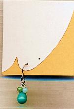 ガラスターコイズのなみだピアスです。ターコイズはガラス製です。最初ターコイズまがいのピアスという名前にしようかと思いましたが、詐欺まがいのまがいではあまり雰囲気が悪いのでなみだピアスに落ち着きました。ブルーの涙というのも素敵だと思います。涙の上で転がる天然石は本物です(グリーンアベンチュリンとアマゾナイト)どちらもマイナス思考を排除してポジティブになれる石、だそうです。涙をふいて前を見ようということでしょうか。とここまで書いてターコイズまがいにしなくて良かったと思う(笑)