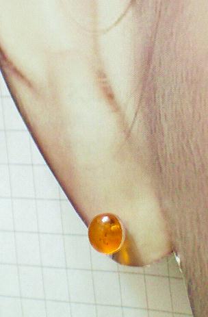 天然石琥珀(コハク)のピアスです。大人っぽいくすんだ黄色で、ウィスキーのようなほろにがコハク色は季節を問わず大人っぽくつけていただけますよ。少し日焼けしたお肌にも合いそうです(笑)大きさ5ミリですが半円タイプですので、丸い玉のデザインよりもやや高さが低めでつけやすいですよ