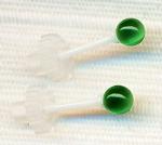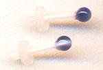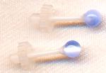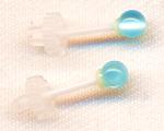 当店の定番商品でピアスの練習に便利な「セカンドピアス丸玉」でございます。セラミックの軸の太さ0.9ミリ長さは1センチです。玉の大きさが3ミリでございます。玉は半透明なガラス製で、見る角度によっていろいろ模様が変わってかわいいですよ。シンプルでセカンドピアスとしての用途にこだわらず普段使いにもつけやすいピアスです。おすすめ。