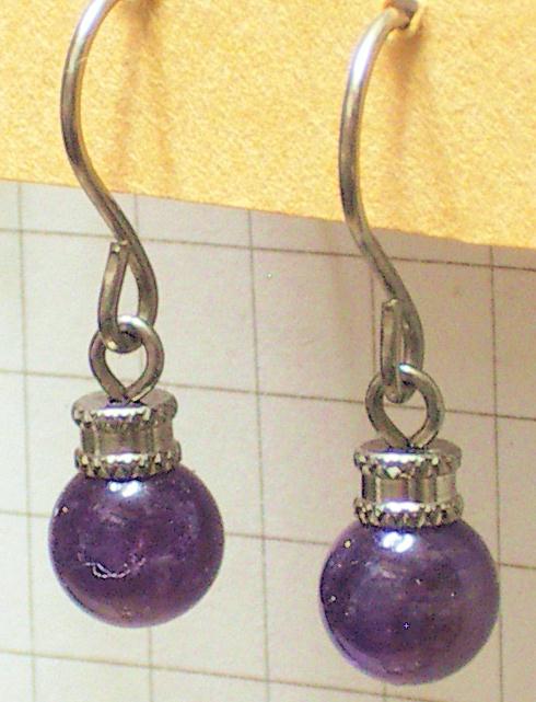 一粒天然石が揺れるアンティークデザインオールチタンピアス(金属部分が全部純チタン製)