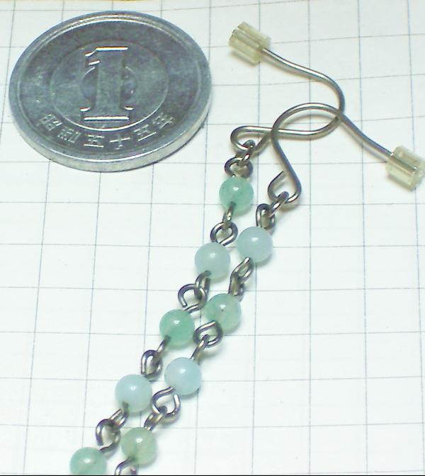 天然石チェーンで揺れるクリソプレースのオールチタンピアス(金属部分が全部純チタン製)