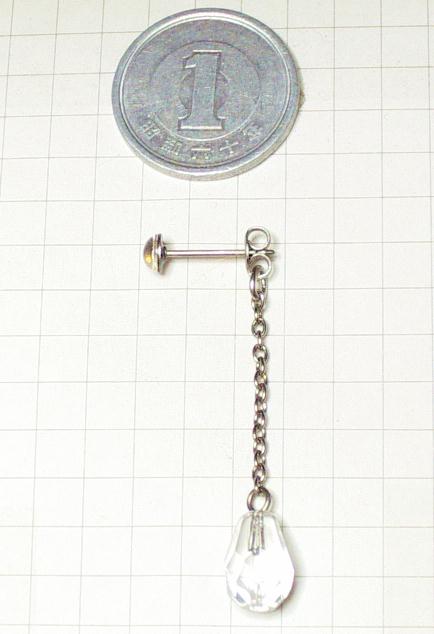 ホーム / 軸太ロング純チタンセカンドピアス / ガラスのしずくのバックピアスのついた涙目クリスタルガラスの軸太ロング純チタンセカンドピアス(オールチタン)
