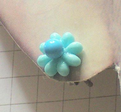 お花の真ん中につく石は天然石ターコイズです。色はうすブルーです。大きさは3ミリくらいです。