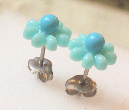 ターコイズは1粒でもわりと存在感のある石ですが、お花の上に乗っているこちらのデザインは、お花が雰囲気を和らげて、1粒デザインよりもつけやすいと思います(笑)