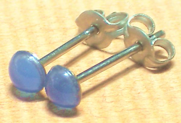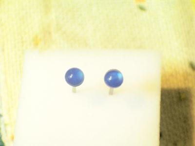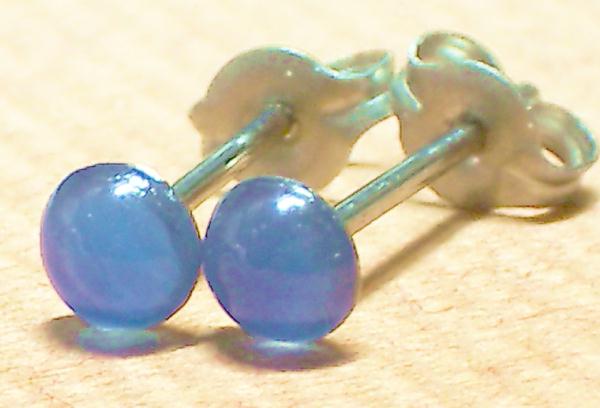 石は天然石ブルーめのうです。大きさは4ミリでございます。半円タイプ(玉を半分に切った形)です。石の色はブルーでございます。