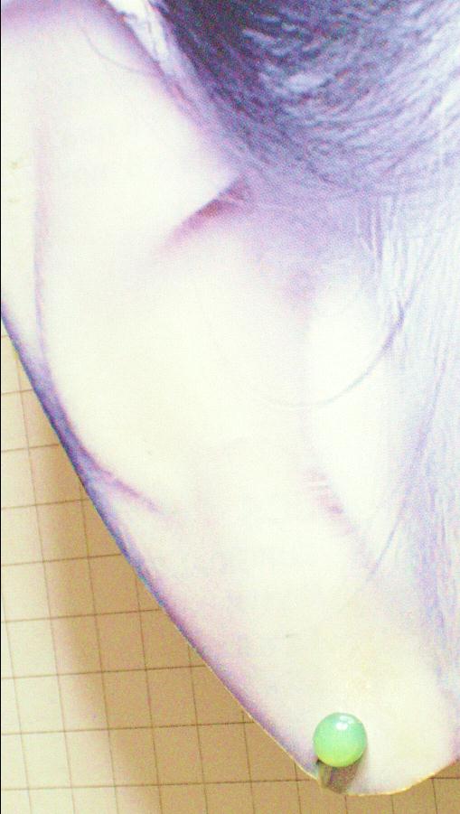 耳のイラストの上につけてみました。大きさの参考にしてみてください。