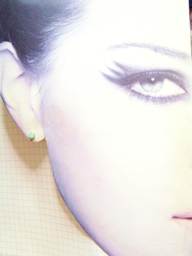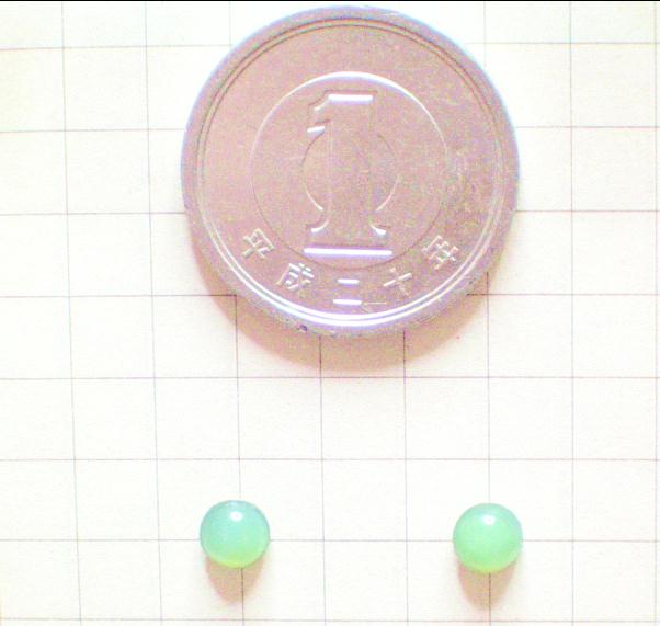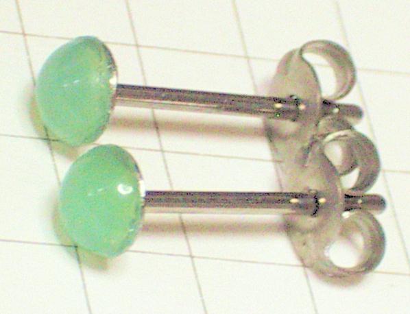 石は天然石クリソプレースです。大きさは4ミリでございます。半円タイプ(玉を半分に切った形)です。石の色は淡アップルグリーンです。