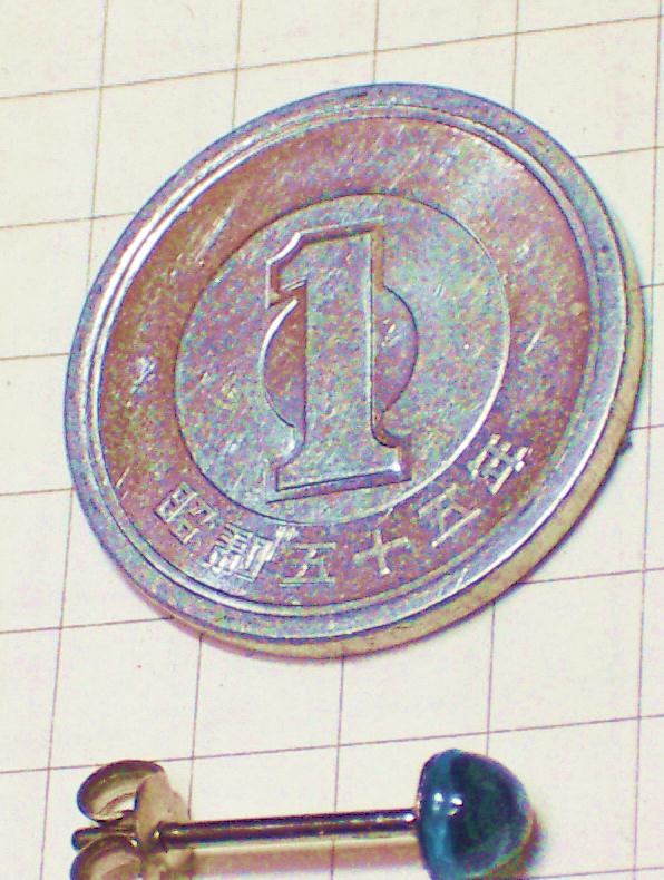 石は天然石ダークブルートパーズです。大きさは4ミリでございます。半円タイプ(玉を半分に切った形)です。石の色は薄ブルーです。