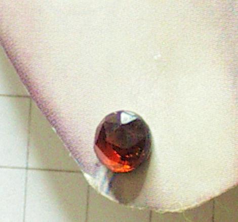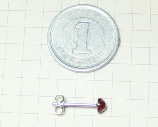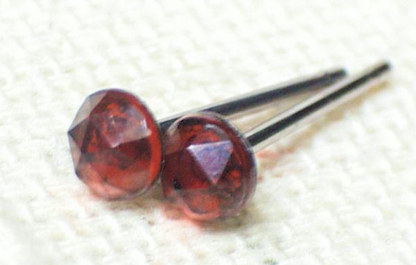 石は天然石ガーネットです。大きさは4ミリでございます。半円タイプ(玉を半分に切った形)です。石の色は半透明の濃いめのワインレッドでございます。石の表面にはざっくりとしたカットが入っており適度に光ります。