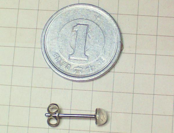 石は天然石ラブラドライトです。大きさは4ミリでございます。半円タイプ(玉を半分に切った形)です。石の色はうすグレーです。見る向きによって青白い光を発します。