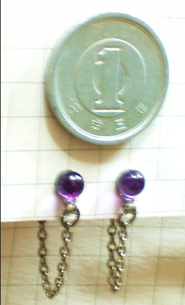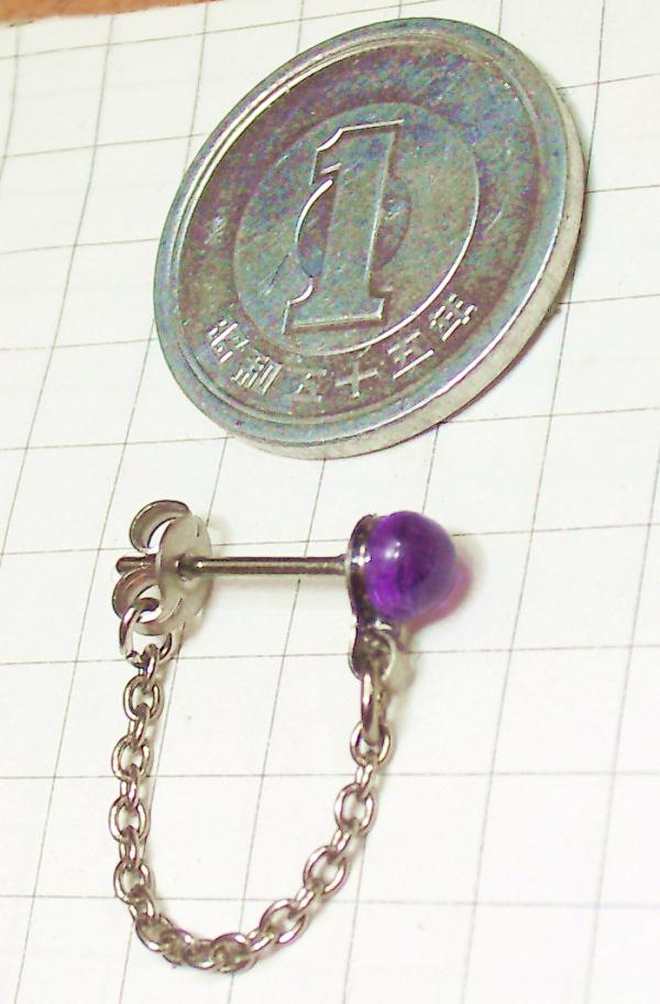 石がのっている台座や揺れるチェーン部分含め金属部分全体が純チタンです。耳が厚くてスタッドタイプをあきらめていた方にもおすすめです。ピアスの頭の天然石の大きさは4ミリです。