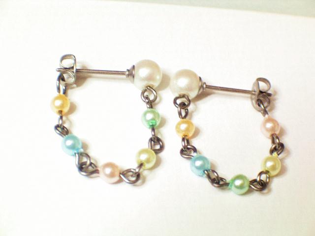 ホーム / 軸太ロング純チタンセカンドピアス / パールチェーンのついた軸太ロングオールチタンセカンドピアス◆太さ19G16G14G選べます