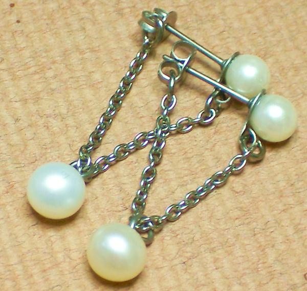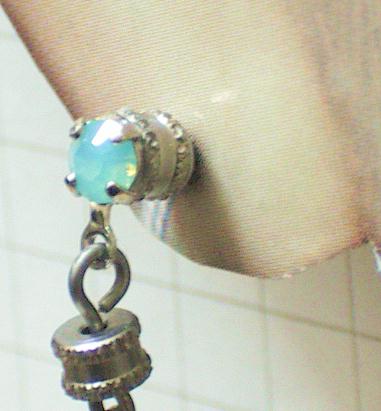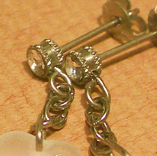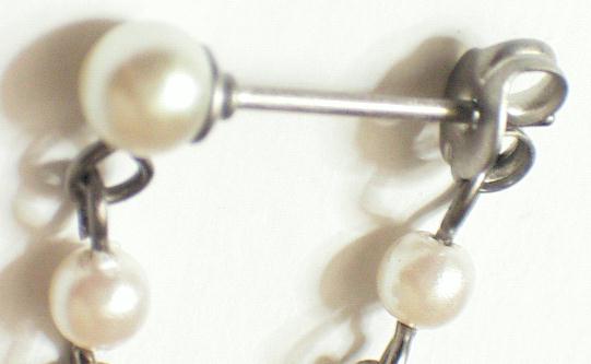 パールチェーンはピアスキャッチと繋がっていますので、 ピアスキャッチを落とす心配がありません(笑) |