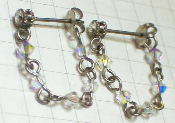 ピアス全体が純チタン製ですのでお肌に優しく、チタンの軸のピアスが大丈夫な方でしたら、チェーン部分が耳やお肌に触れても違和感なくお使いいただけると思います。 |