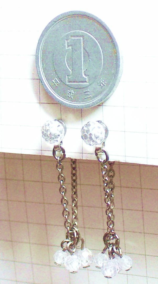 1円玉の大きさは2cmです。方眼の1マスは5ミリです。軸長めで余裕がありますので耳が厚い方でもつけやすいですよ。ピアス軸が短くてお困りの方にもおすすめです。スマホの上に1円玉の載せて同じ大きさになるよう拡大していただくと実寸大になります☆