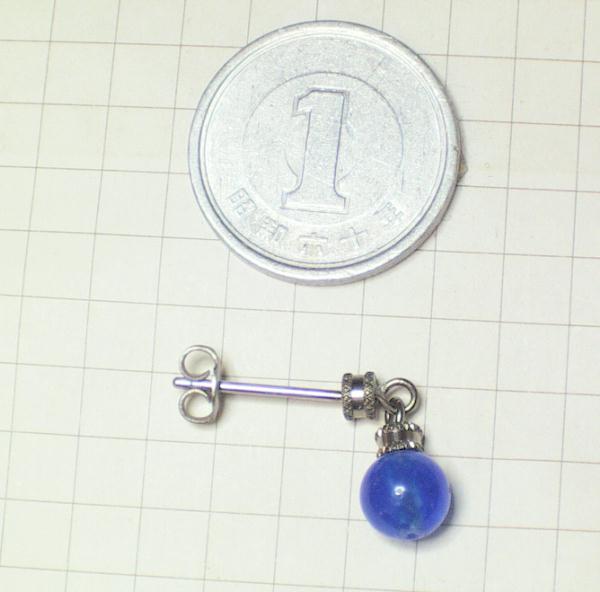 アンティーク天然石ブルーめのう(瑪瑙)が揺れる軸太ロング純チタンセカンドピアス