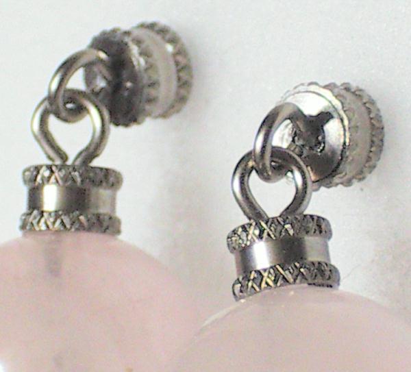 アンティーク天然石ローズクォーツ(瑪瑙)が揺れる軸太ロング純チタンセカンドピアス