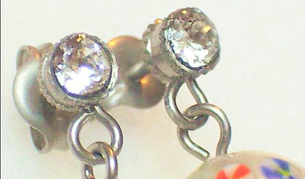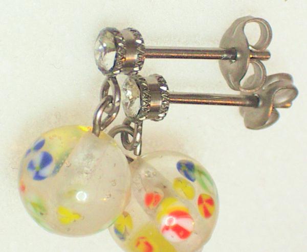 拡大しました。チタンの深みのある落ち着いた銀色は石やガラスの色を引き立てます。昔ながらのこのタイプのガラス玉は最近作っている所が減ってきています。 |